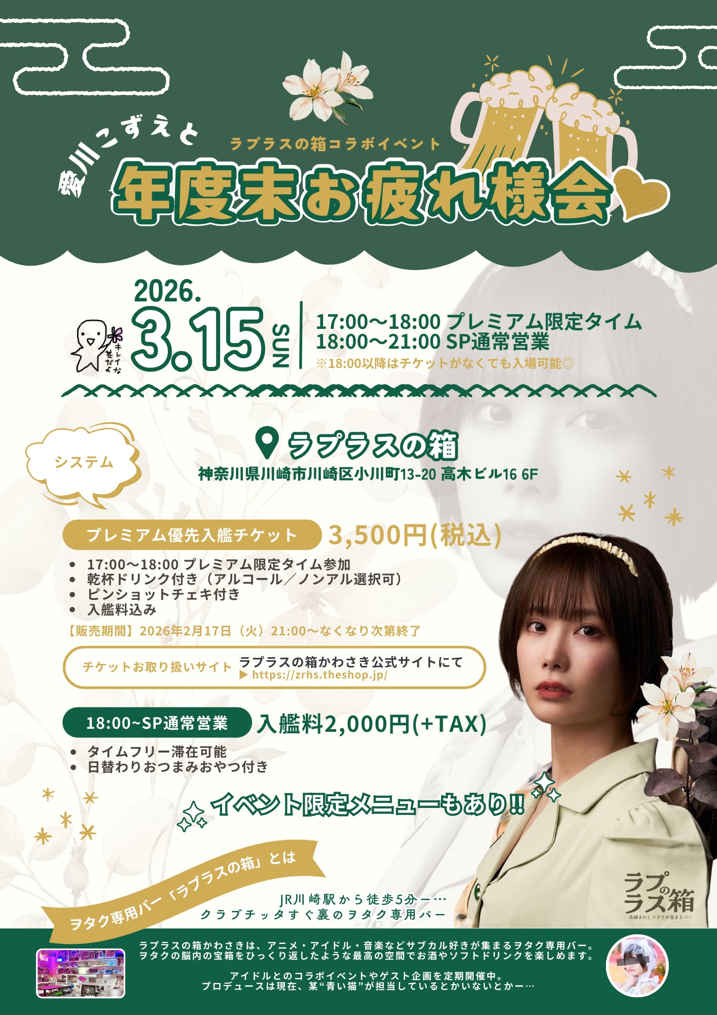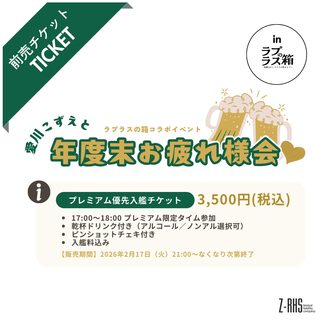 【先着/キャンセル分】 3月15日(日)開催『愛川こずえと年度末お疲れ様会♡』【プレミアム優先入艦チケット】