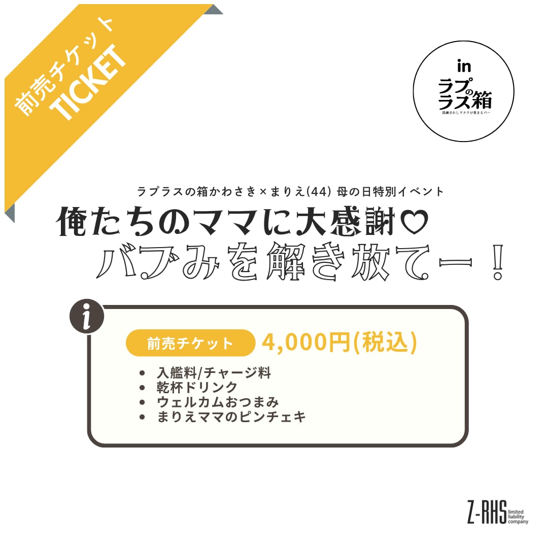 【先着販売】 5月10日(日)開催『まりえ(44) 母の日特別イベント 「俺たちのママに大感謝♡バブみを解き放てー!」』